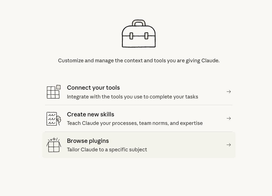 - 打开 Claude 界面,点击左侧导航栏中的 Customize