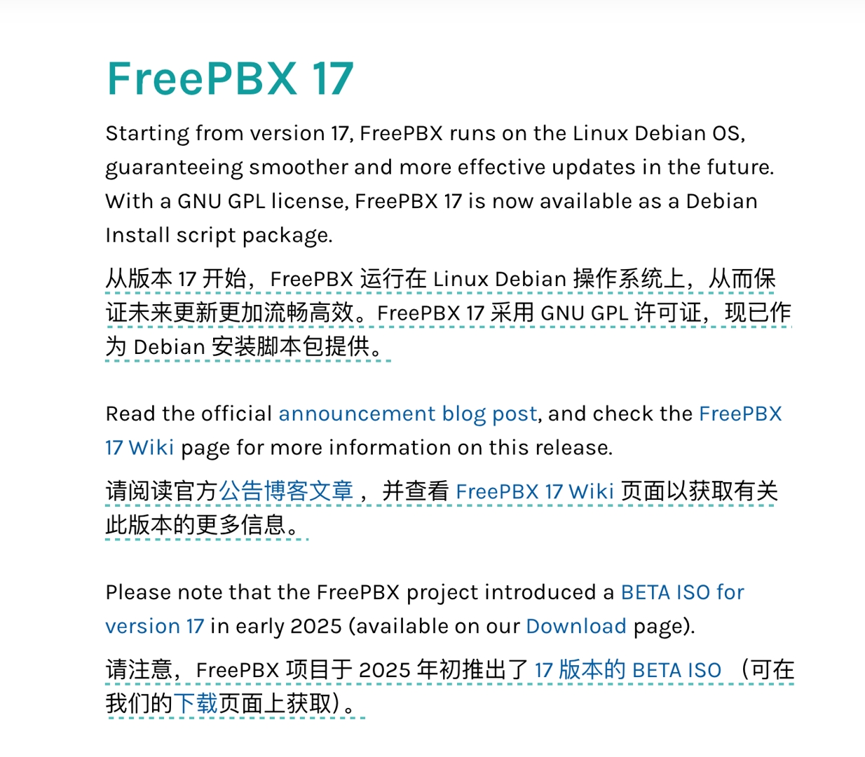 从 FreePBX 17 开始,官方已明确: